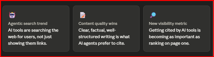 Here is the new reality: your content must be easy for AI to understand and trust. That means clear structure, accurate information, good headings, and a fast-loading site. If your content is messy or full of fluff, AI agents will skip it and use something better.